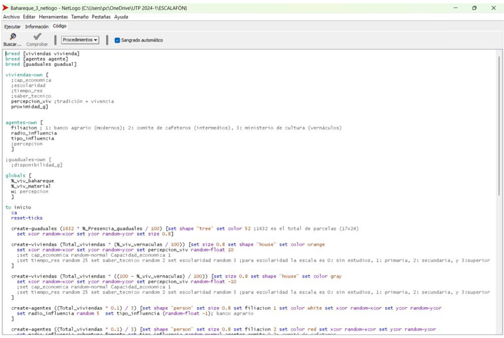 Figura 7. Ventana 'Código' modelo NetLogo 5.3.1.