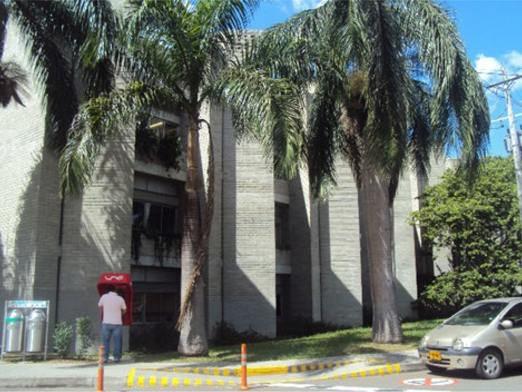 Figure 2. Block 19a in the Universidad Nacional de Colombia Campus Medellín; recycled concrete block walls