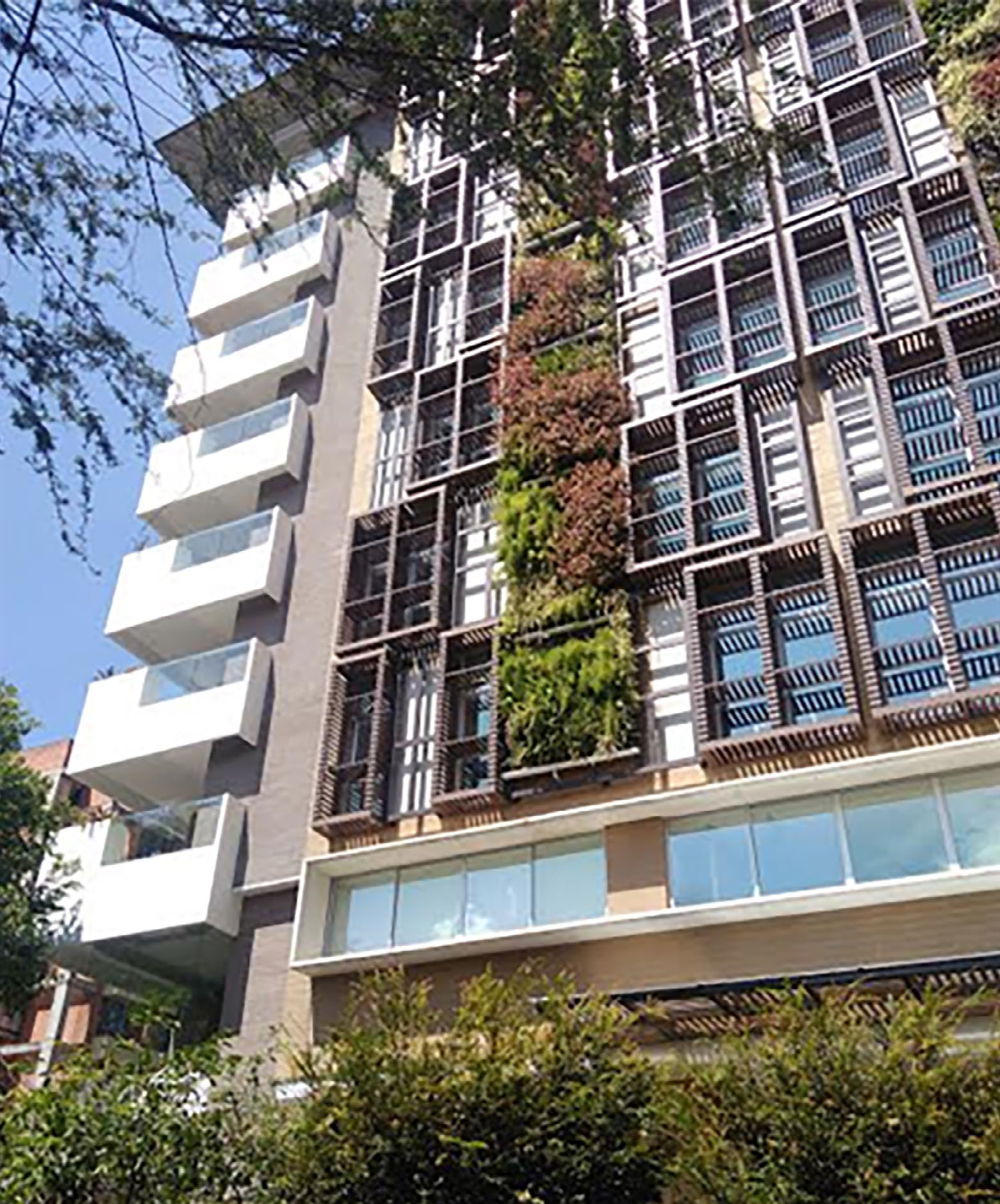 First and foremost, regardless of the climate, it's important to recognize that there are variables over which we have no control. One of these is the sun, or the energy radiated from this star. Keeping this in mind, the Terra Biohotel project, located in Medellín at 1450 meters above sea level, has two of its facades facing west, which means they receive solar radiation for most of the day, accumulating heat on their walls. Traditionally, air conditioning systems are used to combat rising temperatures rising to uncomfortable levels, along with blackout curtains or screens to block sunlight from entering rooms and heating surfaces such as floors, walls, and furniture in indoor spaces like rooms, lounges, and offices.
