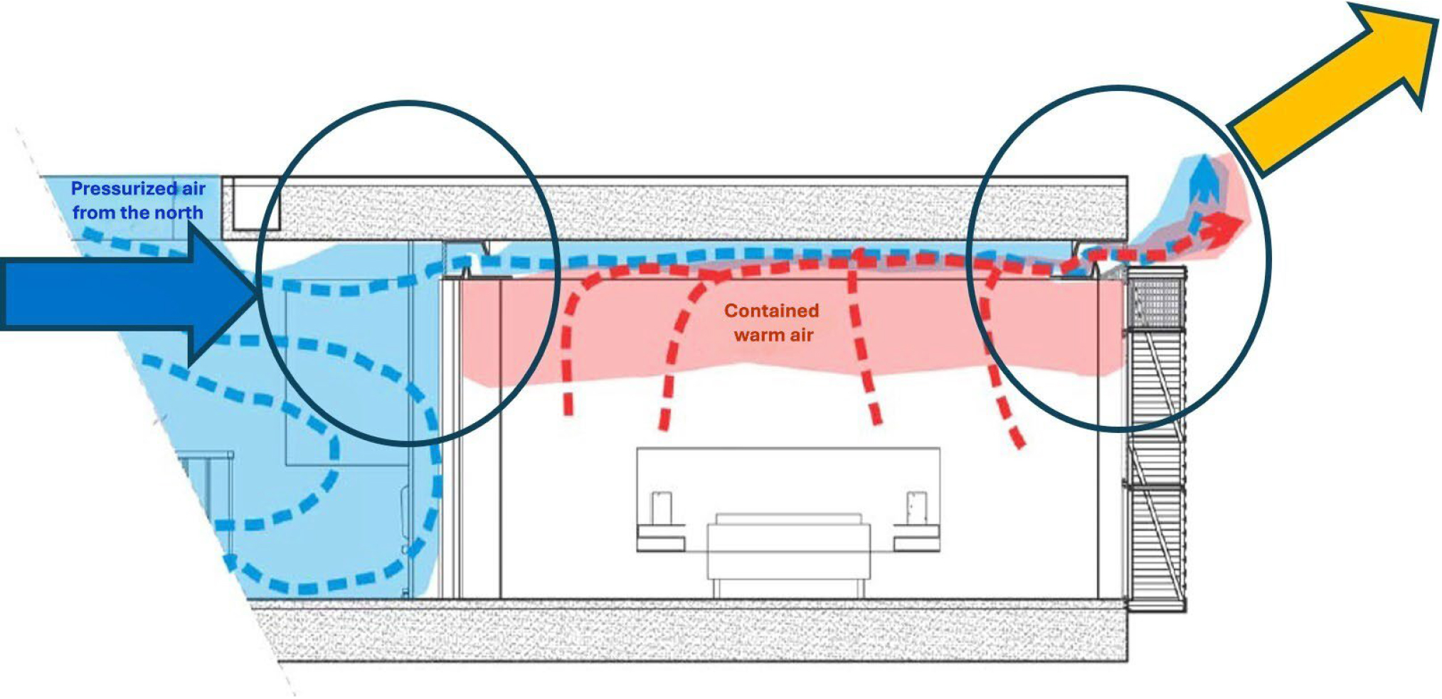 Figure 18. Room orifices receiving warm air through Trombe wall.