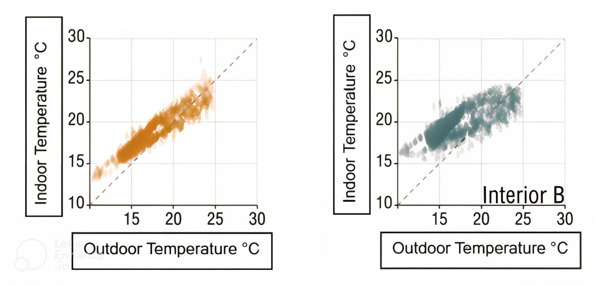 In both cases, the living conditions remained within comfortable ranges without requiring mechanical systems for cooling (in the warm-temperate climate of the hotel) or heating (in the cool climate of the house). This translates to significantly lower operational costs for the buildings, given the rising annual costs of energy and potable water in Colombia. Both buildings implemented rainwater harvesting systems, taking advantage of the ample precipitation in their respective locations (Monsalve Valderrama y Orozco Restrepo, 2022).