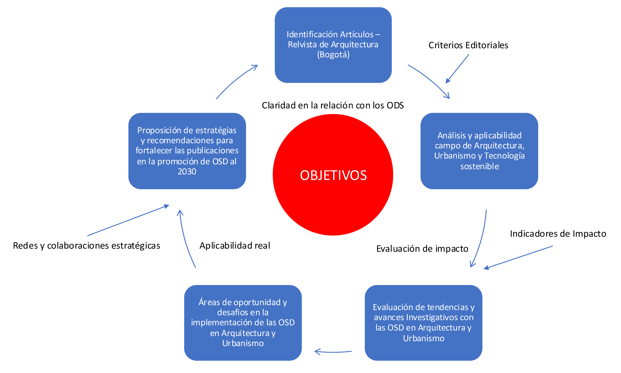 En este marco, el presente estudio se propone evaluar el impacto y la contribución de la Revista de Arquitectura (Bogotá) en la promoción y aplicación de los ODS durante el periodo 2015-2025, reconociendo su potencial como plataforma para fomentar una arquitectura más sostenible y socialmente comprometida. Para ello, se plantea una revisión crítica de los artículos publicados en las revistas de arquitectura latinoamericanas (Figura 1), con el fin de: