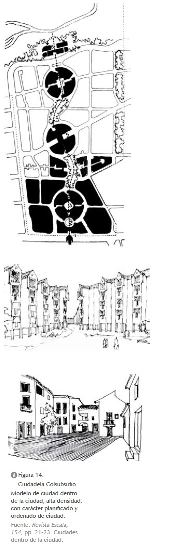 En términos generales, el conjunto cerrado termina constituyéndose en el modelo de una nueva generación morfológica caracterizada por la imagen fragmentaria y dispersa de la urbanización de vivienda, la cual ya no se construye a través de los elementos básicos calle, cuadra, manzana, parque de los tejidos tradicionales, sino que incorpora nuevos conceptos como el bloque, la célula y el área común, que terminaron por constituirse en el modelo ideal para la construcción de la ciudad a través de soluciones de vivienda colectiva en todos los niveles sociales del país (figura 13).