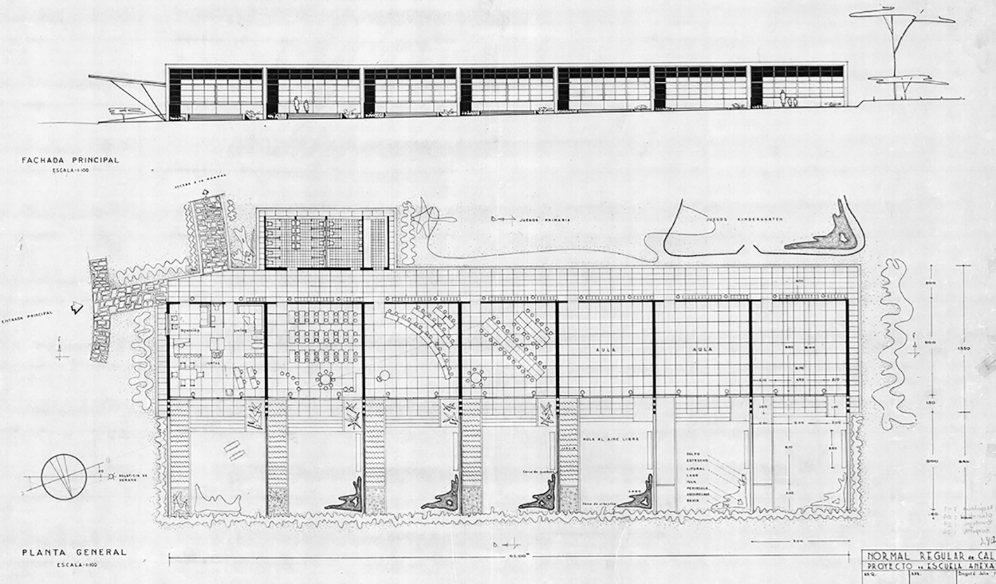 Reconocer el legado de la obra del arquitecto colombiano Juvenal Moya Cadena (1921-1958) permite identificar las estrategias proyectuales relacionadas con la climatización pasiva. La hipótesis se fundamenta en la influencia que Moya Cadena recibió de Leopoldo Rother (1894-1978) sobre arquitectura, paisaje y clima. Metodológicamente, se hace un análisis descriptivo y funcional del edificio Escuela Normal Regular (Cali-Colombia, 1946) en aspectos como la génesis del proyecto, las diversas alternativas de fachada y la validez y la vigencia de las respuestas, mediante simulaciones informáticas. En este proyecto, Moya concibe un sistema de doble fachada como respuesta a los problemas de radiación solar y de iluminación de los espacios destinados a las aulas a causa de la orientación del edificio, valiéndose de un cuidadoso análisis del lugar y del riguroso trazado de la carta solar, de tal forma que logró anticiparse a soluciones pioneras en el campo de la técnica y la espacialidad arquitectónicas. Las conclusiones demuestran cómo ya en las primeras generaciones de arquitectos colombianos existía la preocupación por responder a las condiciones climáticas del país, y dan cuenta de los instrumentos proyectuales con los que se contaba para ello.